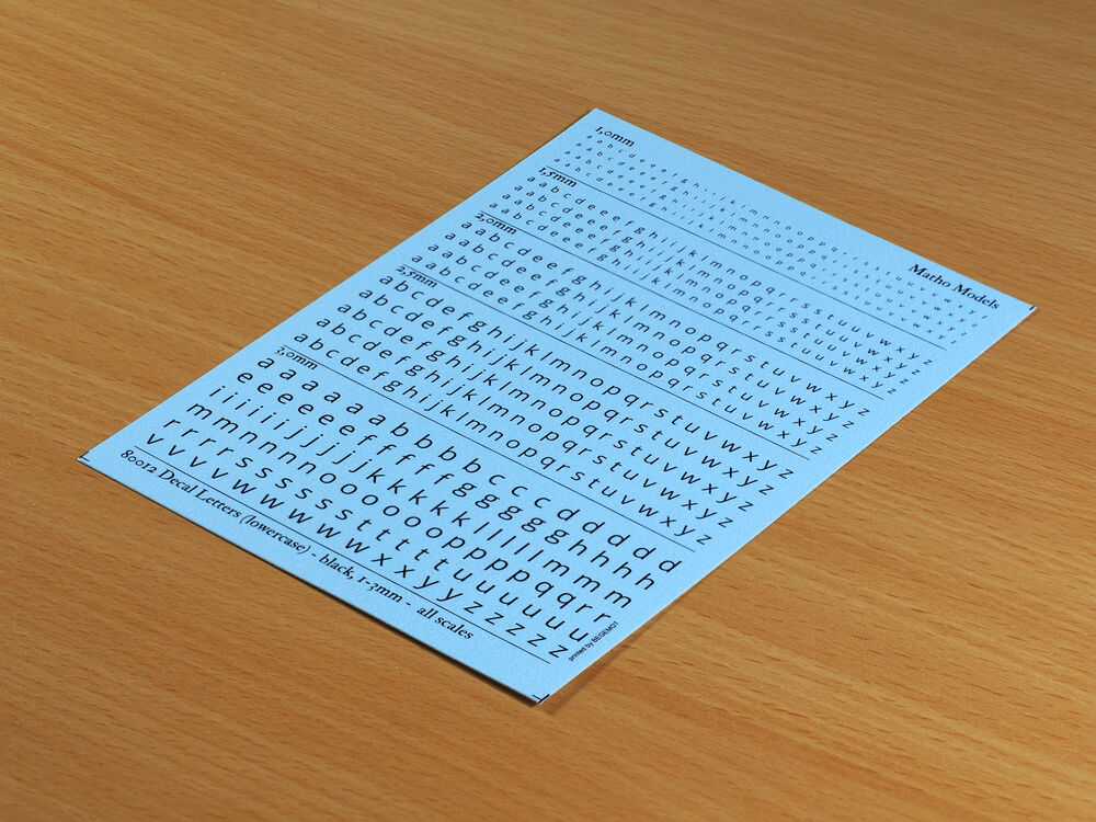 Matho Models 80012 Decal Letters (lowercase) - black, 1-3mm