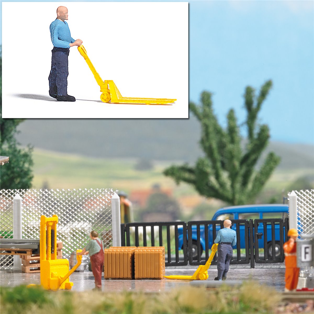 Hubwagen mit Hubwagenfahrer. Action Set für die realistische Belebung Ihrer Modellwelt.